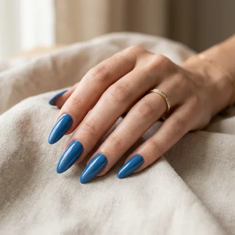Capture the elegant essence of Blue Jeans with this stunning, high-gloss nail color look. Perfect for any season.
