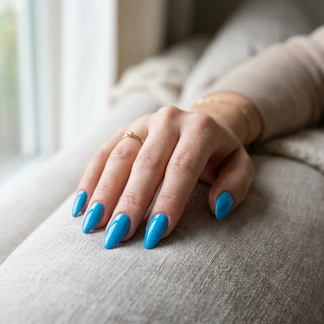 Experience the vibrant energy of Deep Sky Blue nails, a perfect choice for sunny beach days and summer parties.