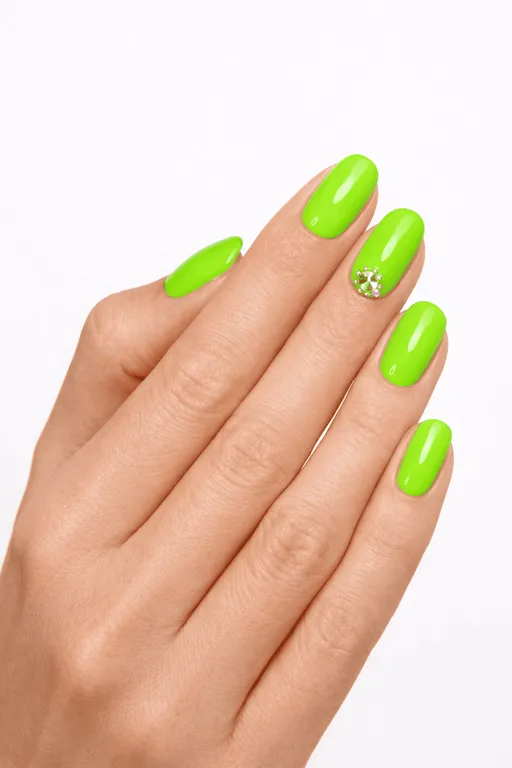 Embrace the heat with Fluorescent Green nail color, a bold and playful tone that captures the essence of summertime.