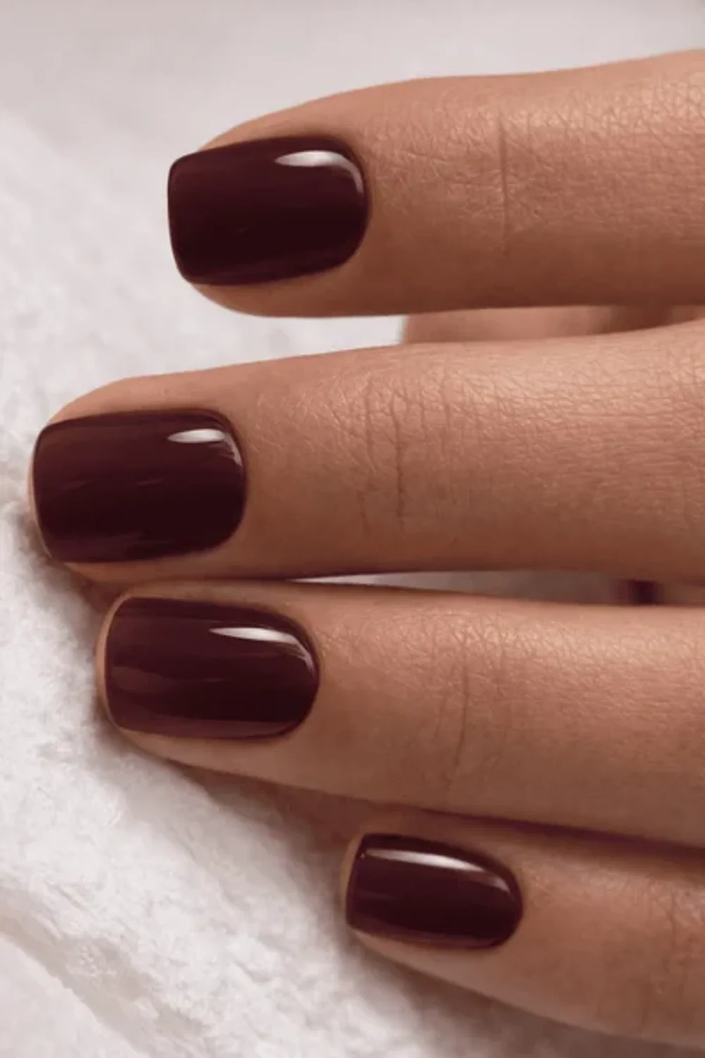 Rum raisin nails blend deep, purplish-brown tones for a sophisticated, fruit-inspired shade that feels cozy and rich.