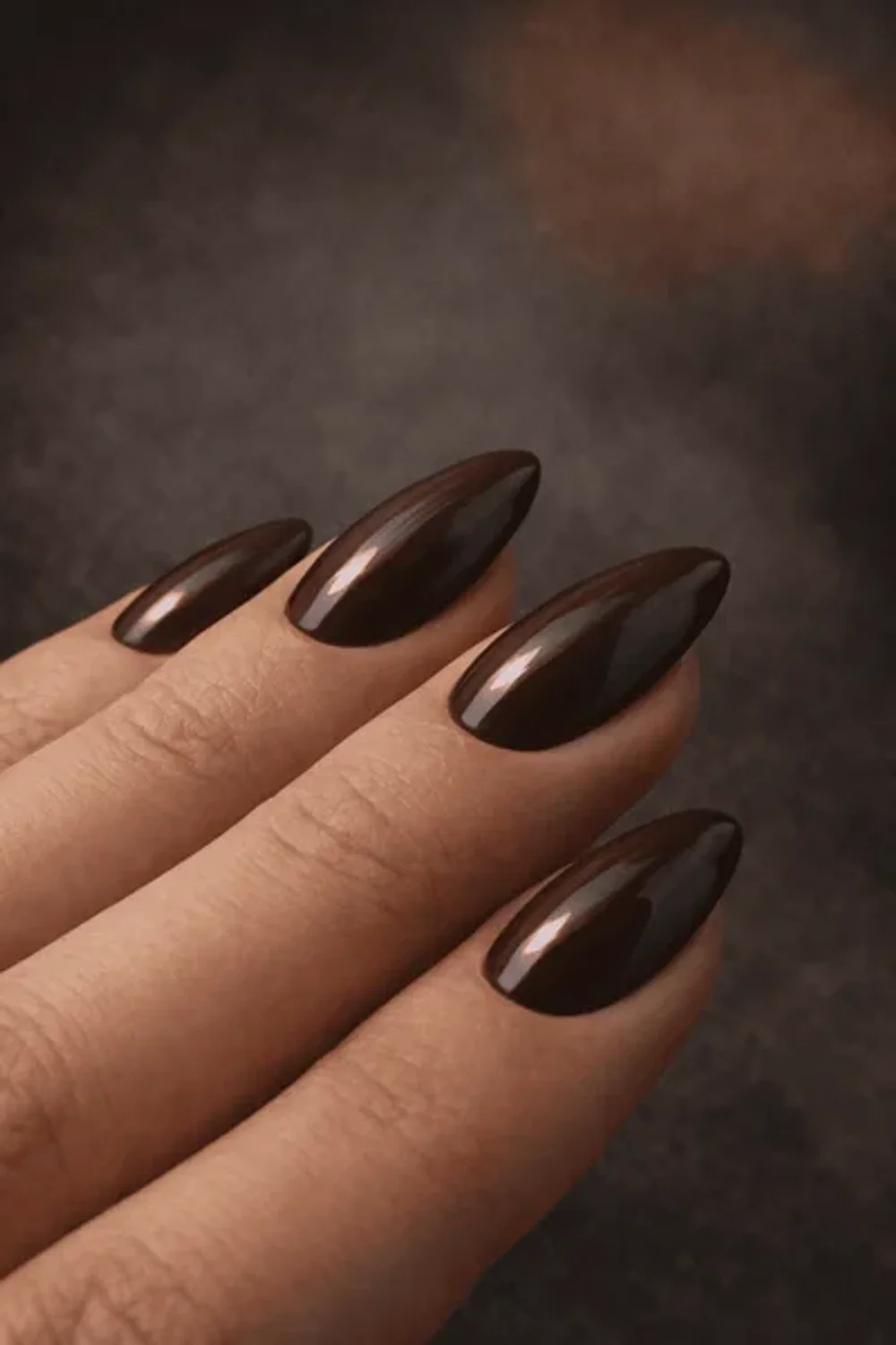 Smoked whiskey nails offer a dark, charcoal-tinged brown that brings a moody, industrial edge to traditional autumn tones.